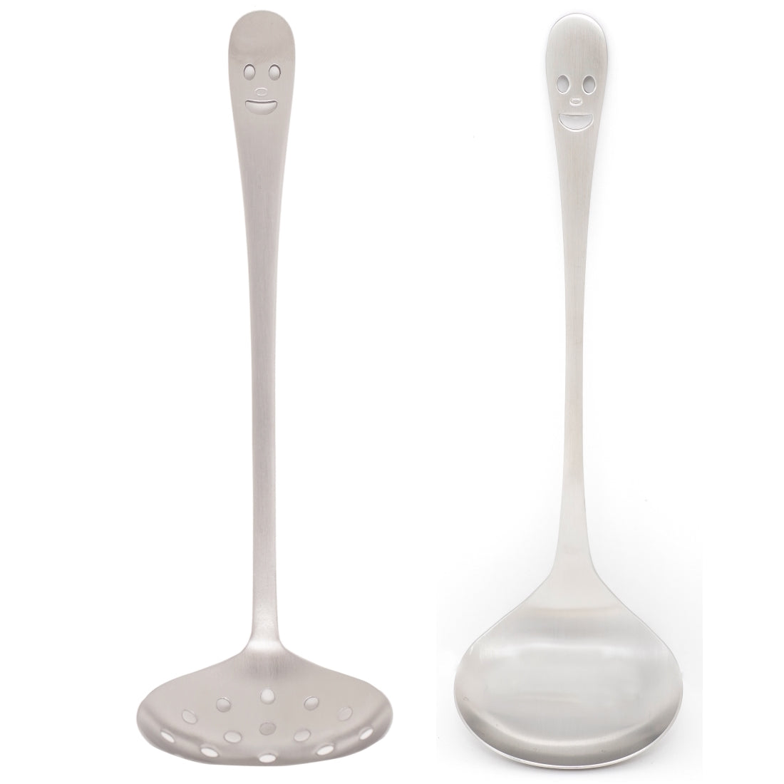 Available in solid or perforated versions, the Happy Face Ladle adapts easily to different cooking and serving needs. Choose the solid ladle for soups, stews, sauces, and gravies, or the perforated ladle for lifting and serving foods while letting excess liquid drain away. Both options are well-balanced, easy to clean, and suitable for everyday use.
