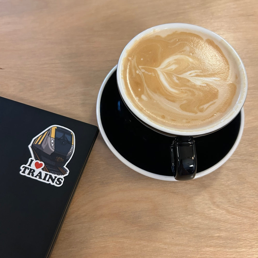 Show off your passion for rail travel with this cheerful “I Love Trains” sticker!